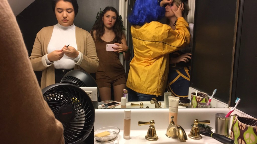 We had strobe lights, black lights, glow lights, glow in the dark paint, and a Halloween playlist. There was no drinking, no drugs, much to the approval of the adults hanging around. Instead, there was bobbing for apples and smashing piñatas, both of which are harder than they look. I went as Puck from “A Midsummer Night’s Dream,” which means that I spent the entire night explaining to people who I was. I was mistaken for Eve, a deer, Poison Ivy, and Peter Pan.