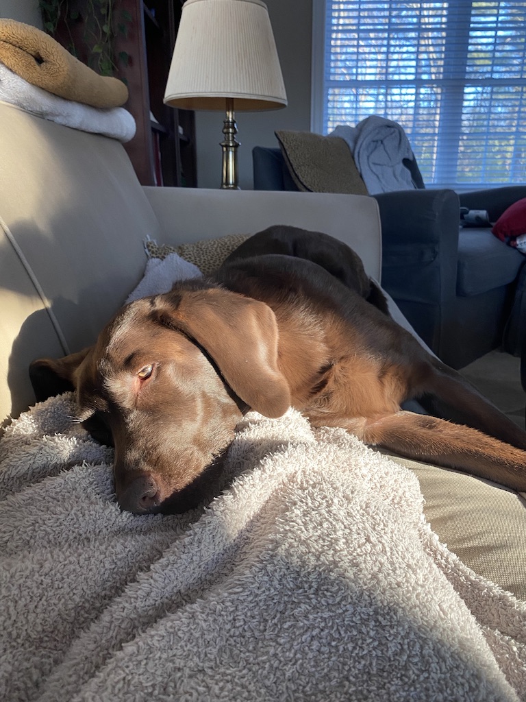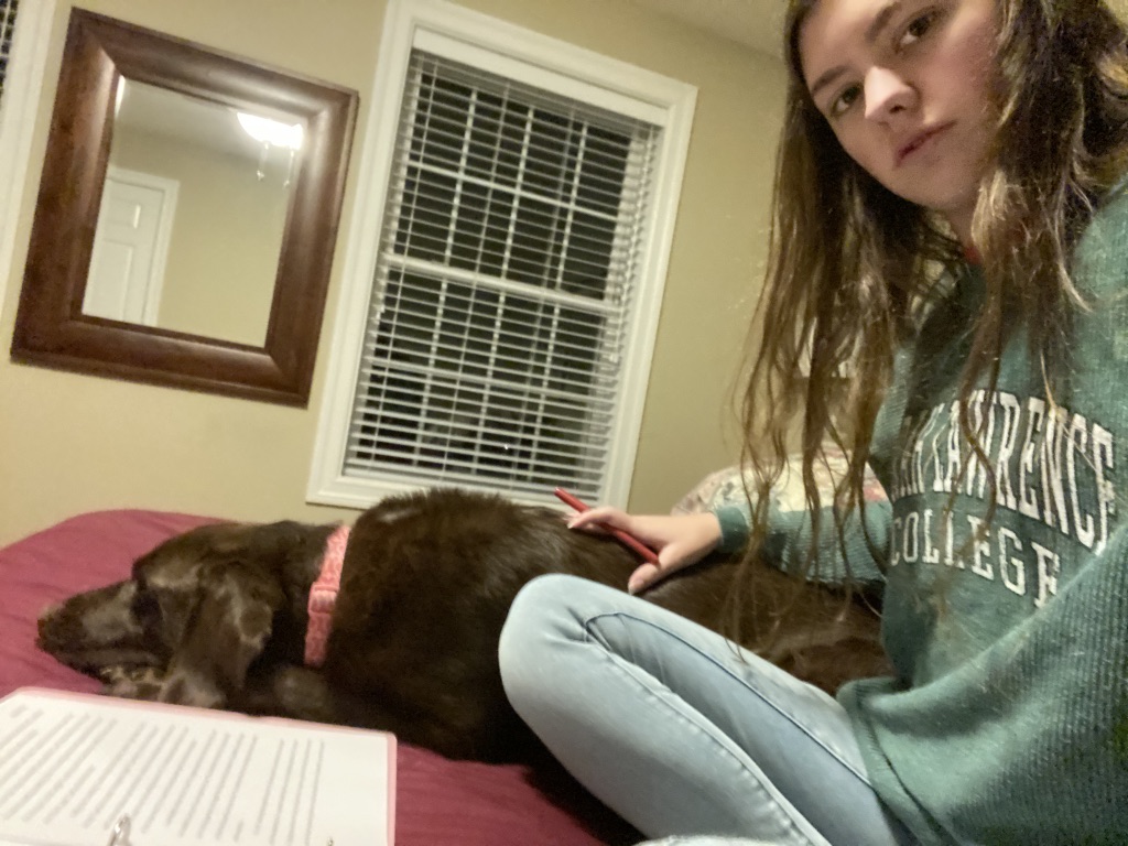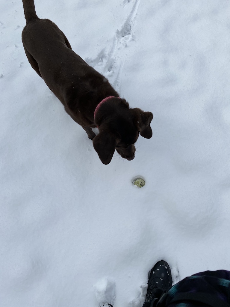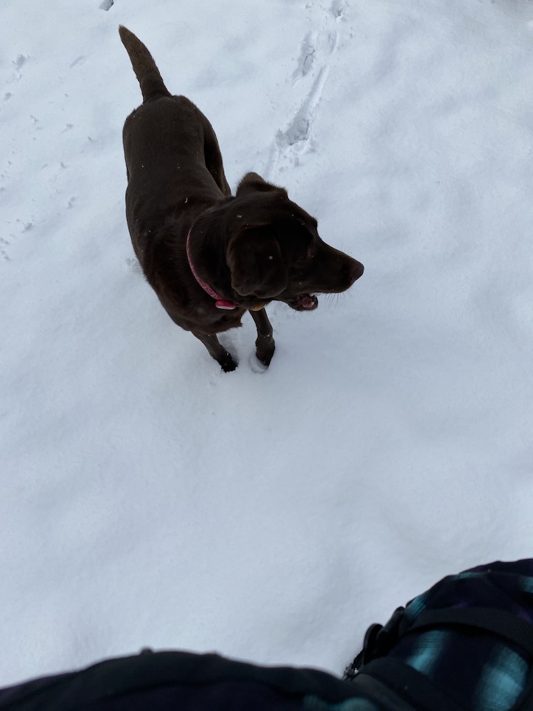 Since I’ve only seen snow a handful of times in my life, the mystique of snow has not yet left me, so I spent a few hours traipsing around outside in the snow and throwing a ball around for their chocolate lab, Lola. I read “The Alchemist” for school with Lola on my lap. I also had her with me on my bed while I worked on my novel, reinforcing my dream that I will one day be doing the same, except with a German Shepherd in my own apartment. When their dog isn’t outside tiring me out, she’s sitting directly in front of the fire, probably burning her retinas with how intently she stares into it.
