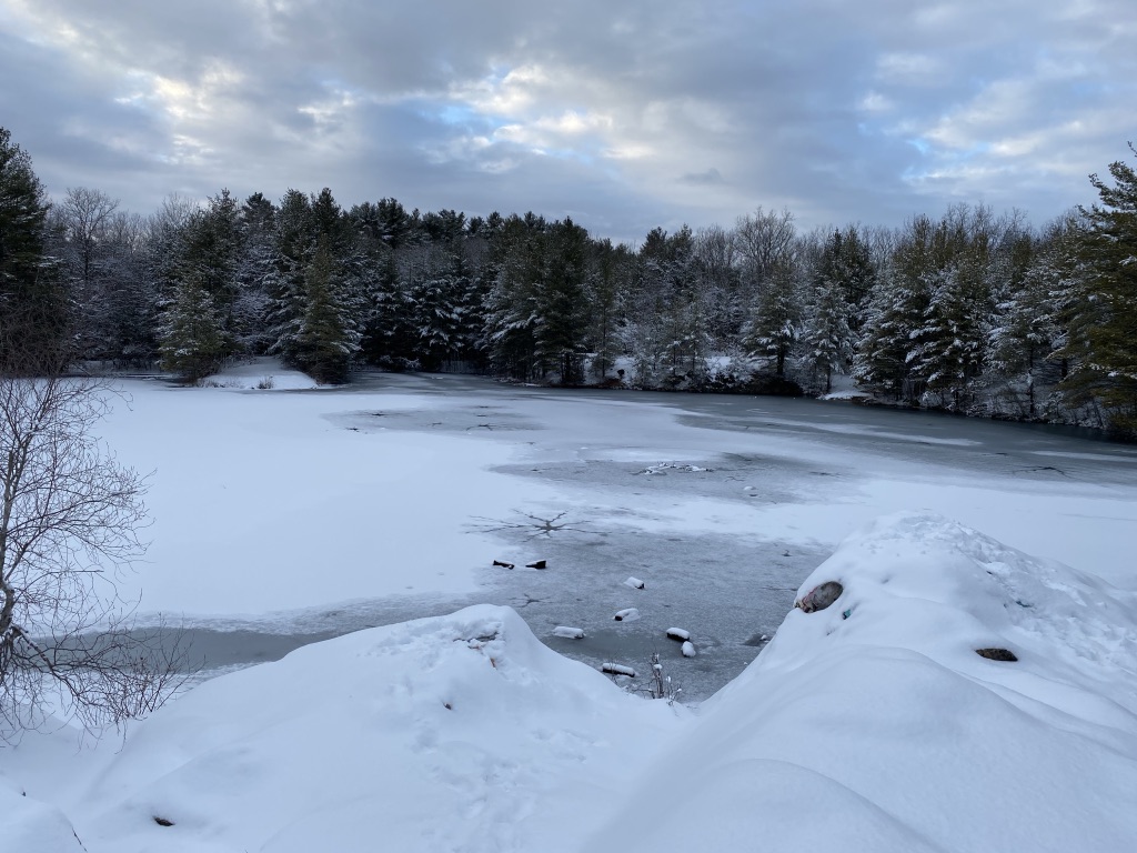 My mom, my cousin Olivia, and I went to the nearby quarry that was iced over. I once heard an artist refer to a similar scene as being in “James Fenimore Cooper country” and even though “The Last of the Mohicans” is still on my reading list, I know exactly what he means.