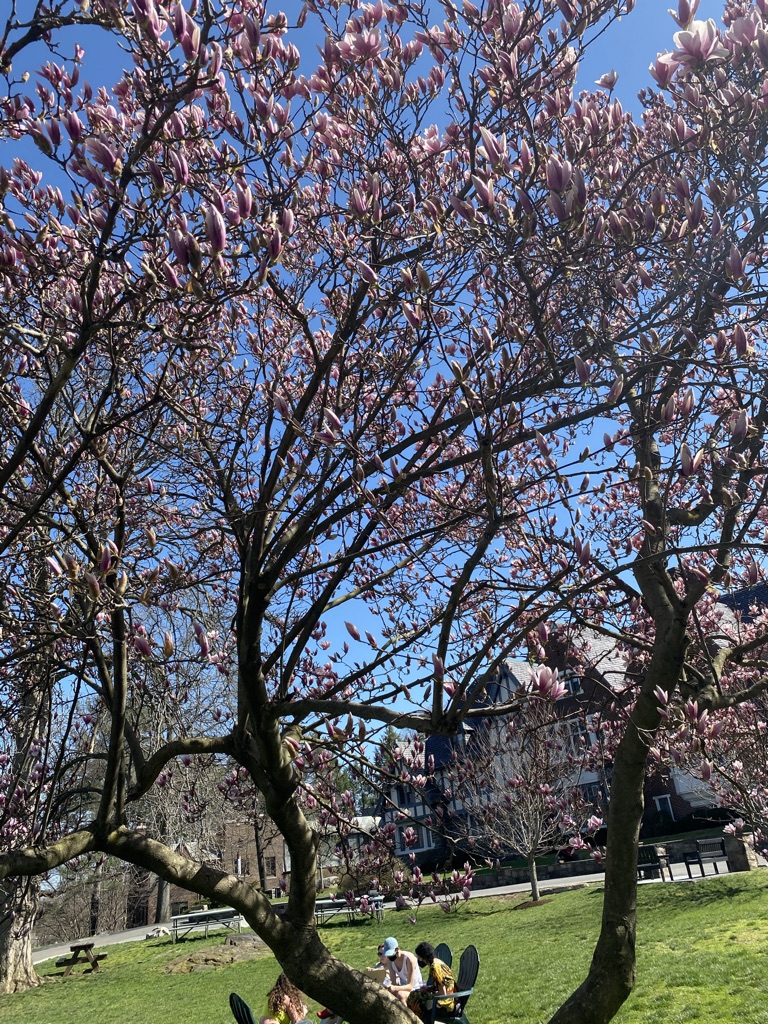 In conclusion, Spring is a time of rebirth and new life, so naturally it is the time to walk around, blowing away the cobwebs in my mind. The campus seems to be reborn too, not just with flowers and trees, but with people giving tours to parents and potential new students, who are just as amazed as I am at the beauty. We’re making way for the next group of students.