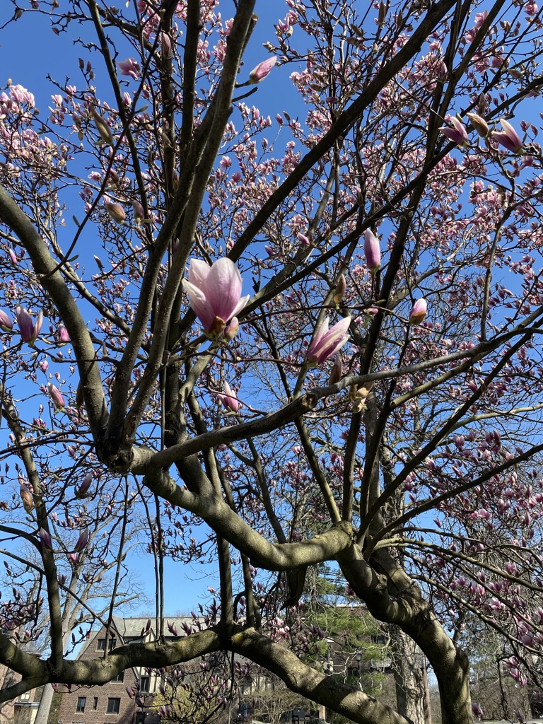 The mask part didn’t happen, but since it was a brisk 66 degrees a few days ago, I roamed the campus, mostly listening to Prince and taking in the start of Spring. I did this at the request of my Italian conversationalist, MariaGrazie, who probably thinks that I’m depressed and suggested that I go for a walk around campus, so that I could feel a little less stale and break up the monotony. This came after she asked me, in Italian, what I’d done recently, and all I could say was that I finished a Stephen King book two days ago.