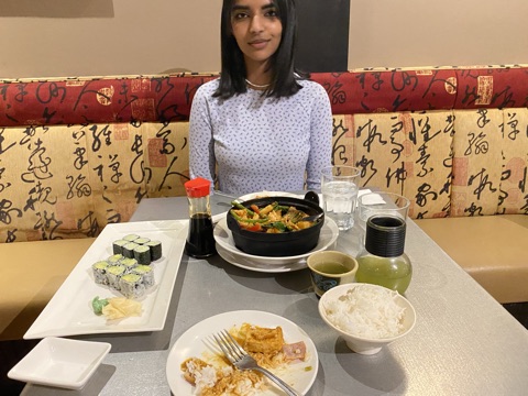 The next night, feeling a little bit more extroverted than usual, I went with Anahat to Wild Ginger, a Japanese restaurant we’d never been to, where we ordered green tea and vegan sushi.