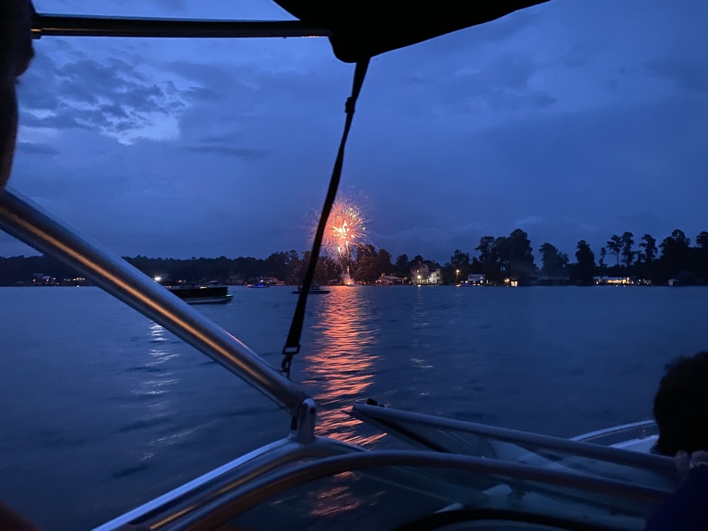 At the lake there was day-drinking, grilling, music, boating, fireworks and old friends who we hadn’t seen since the start of the pandemic. At first we were playing some AC/DC, because nothing says celebrating America quite like listening to a band from Australia. Then, we got on a boat and drove through the lakes while fireworks went off, directly over our heads. We enjoyed other people’s fireworks, while navigating the dark water that was packed with other boats.