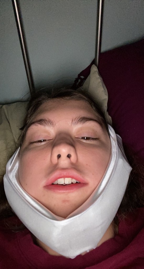 Mouth surgery has a way of feeling like a punch in the face that’ll leave you with sore gums, a tight jaw, and a liquid diet. High as a kite, my mother then dragged me to the car where I supposedly cursed a blue streak and demanded everything. The only part of this that I remembered was when I dove head first into my pillow with my mouth stuffed with gauze and my face wrapped in an ice pack. Being lowered into my bed, I told my mom, “I sleep on my face.”