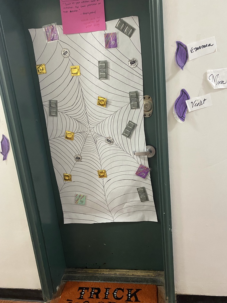 One month is not enough time to get into the Halloween spirit, so I had to start putting out my Halloween decorations in September. I did this by putting up my Halloween-themed mask signs, putting out my “trick or treat” doormat, and by creating and taping some spooky, scary bats throughout my Halloween hallway. Donna Reed has nothing on my homemaking abilities.