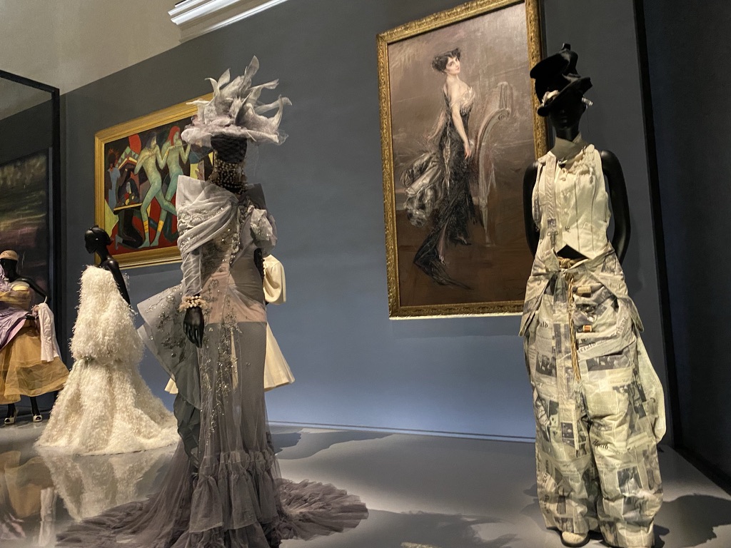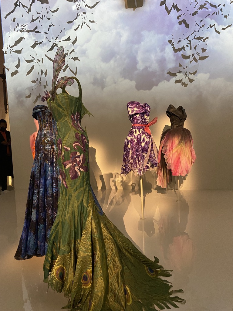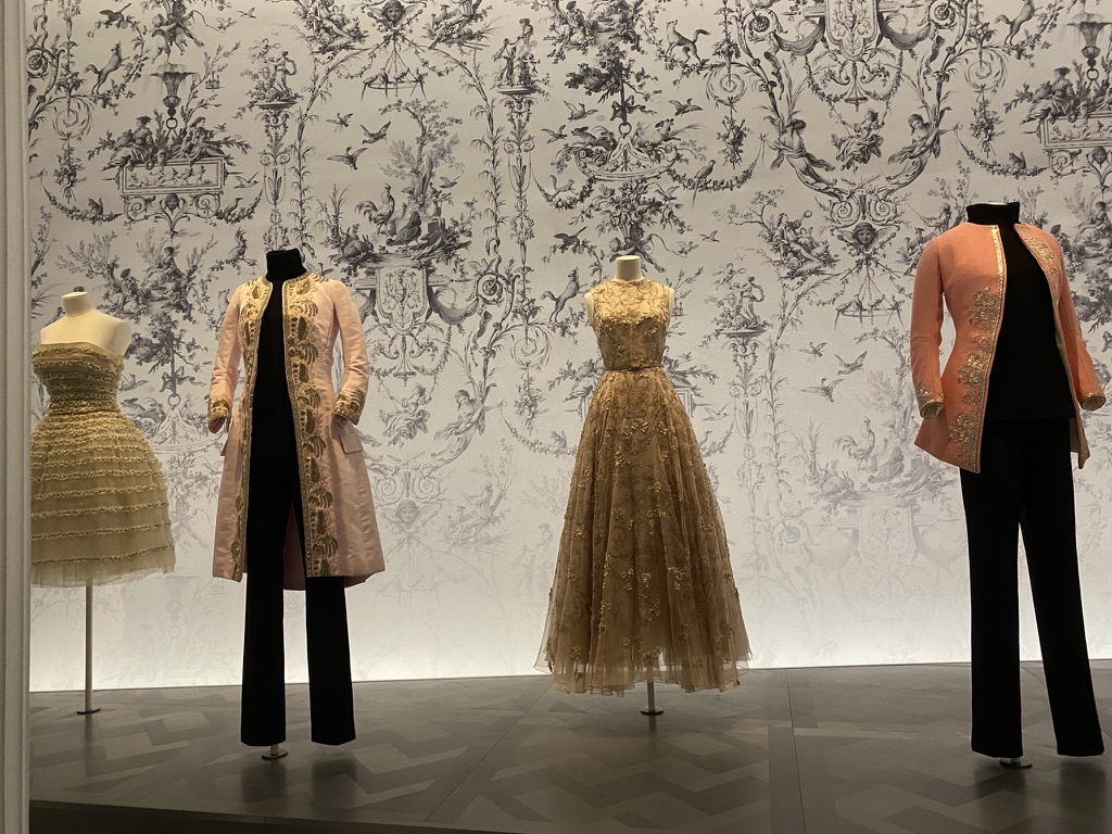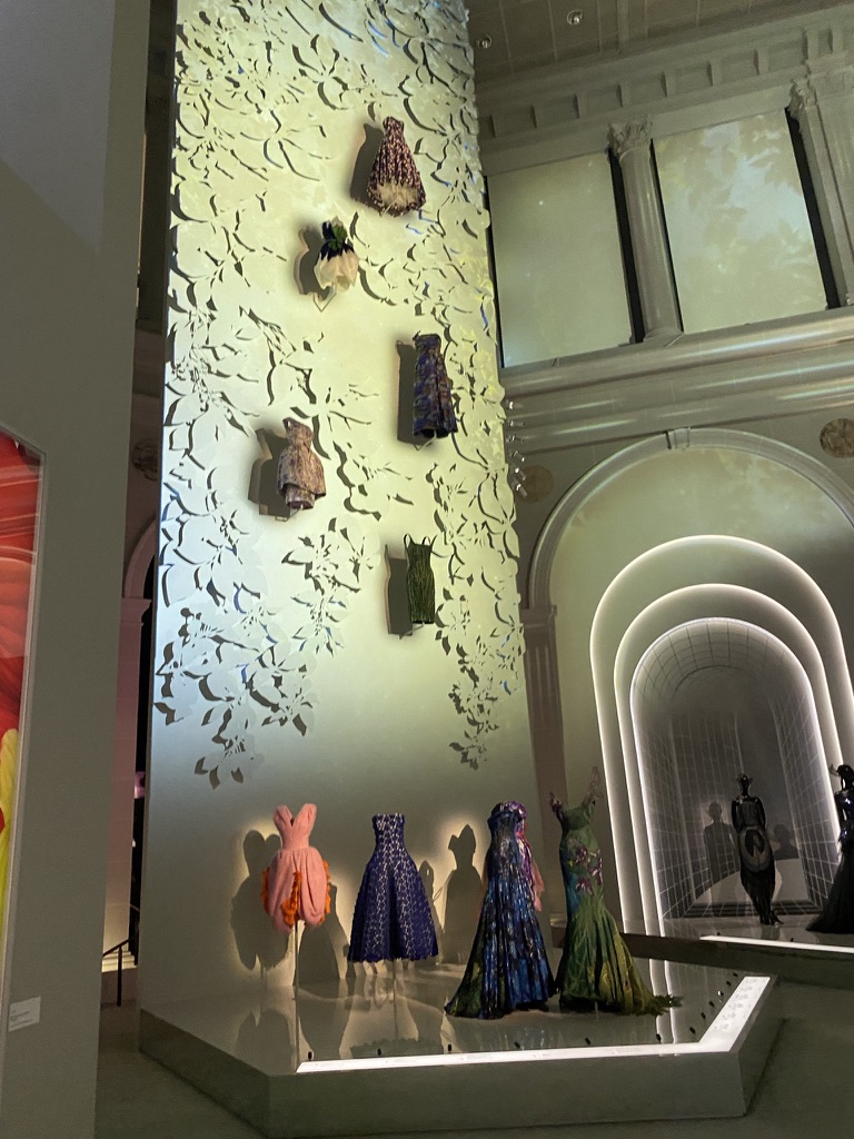 I found it interesting to learn about the different ideas that informed Dior’s work, such as his belief in the idea of American friendliness not being a myth, the culture of the time, and the softness of western style, amalgamating in dresses that celebrated femininity in their time. There were floor to ceiling shelves of stark white outfits, mannequins covered in head to toe black, and vibrant bursts of color lining the walls.