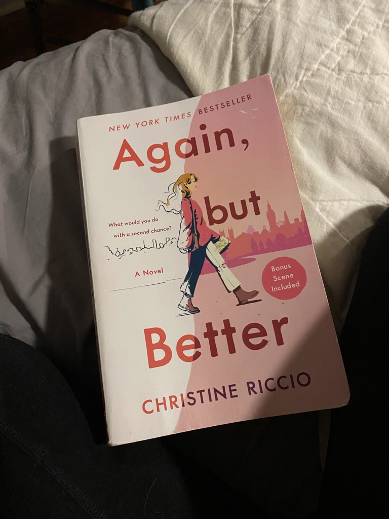 “Again but Better” by Christine Riccio- A never-been-kissed twenty-year-old, who doesn’t socialize, but reads excessively, realizes that she hasn’t made enough friends or hung out with enough people at her New York college, so as she enters her junior year she studies abroad in literature and writing. She also runs a blog, speaks Italian, has a financial advisor for a father, and is trying to write the next great American novel, and I’d just like to know why the author stole my life story. I read this book when I was about to enter my junior year, having also felt like I could have gone out to more events and taken more advantage of my New York City setting. The dialogue misses a few beats, but ultimately captures relationships at that age. The ending was a forcibly happy one in which the protagonist gets her cake and eats it too.
