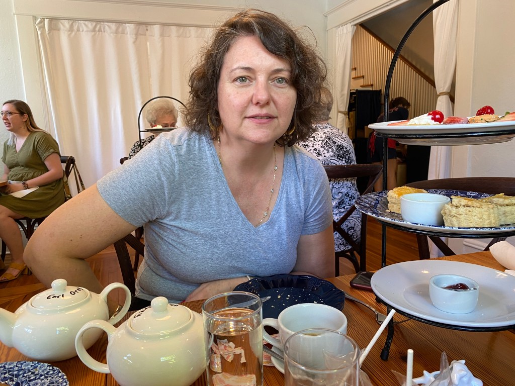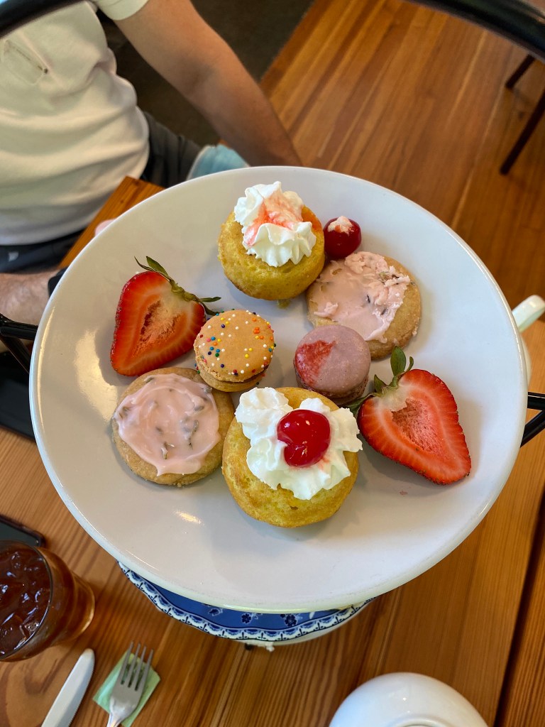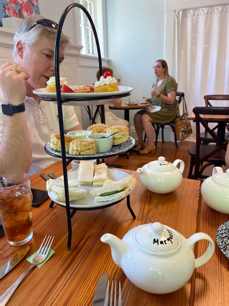 For lunch, we went to a cafe on Lumpkin, cleverly named “The Cafe on Lumpkin.” The appeal of going to “The Cafe on Lumpkin” is that, at around 3:00, they serve low tea, although how it’s any different from “high tea” is beyond me. Each person received a pot of their own tea and I chose “The Marquess,” because, naturally, I can be counted on to choose the one with the bougiest sounding name. With it comes finger sandwiches and scones, plus all of the jams that a person could possibly need to slather on their scone.