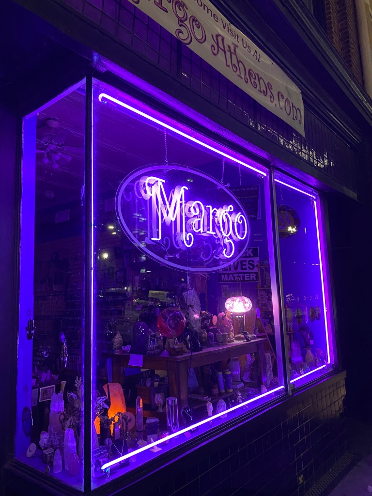 I spent my day shopping at an occult shop that sold spiritual jewelry, a vintage clothing shop, and a locally-owned, independent bookstore, and then had low tea at a cafe in the afternoon and drinks on a rooftop in the evening. This was all my version of nirvana for those who are wondering. I spent my day looking at moonstones I couldn’t afford and vintage hot pants.