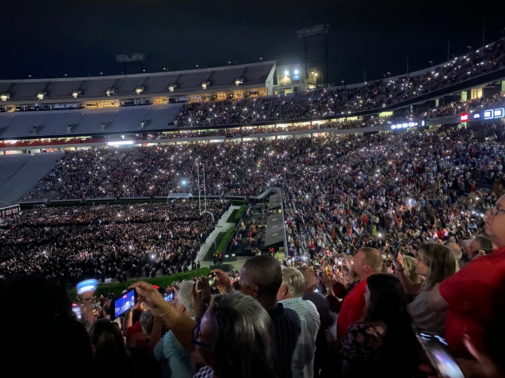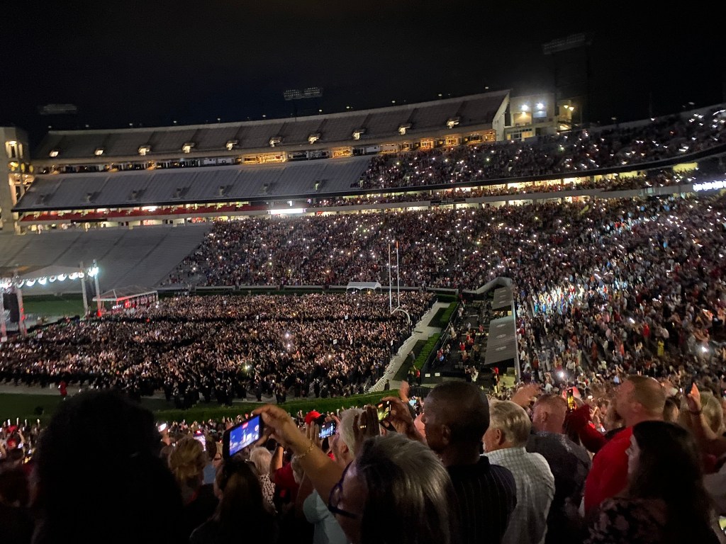 UGA knows how to roll out the red carpet during a graduation ceremony. At my school, I’m likely to get two hours in an uncomfortable folding chair underneath a tent, at the end of which, I receive a diploma with a subtext of “we-will-not-speak-of-this-again-until-we-ask-you-for-money-in-a-few-years” and I’m fine with that arrangement.