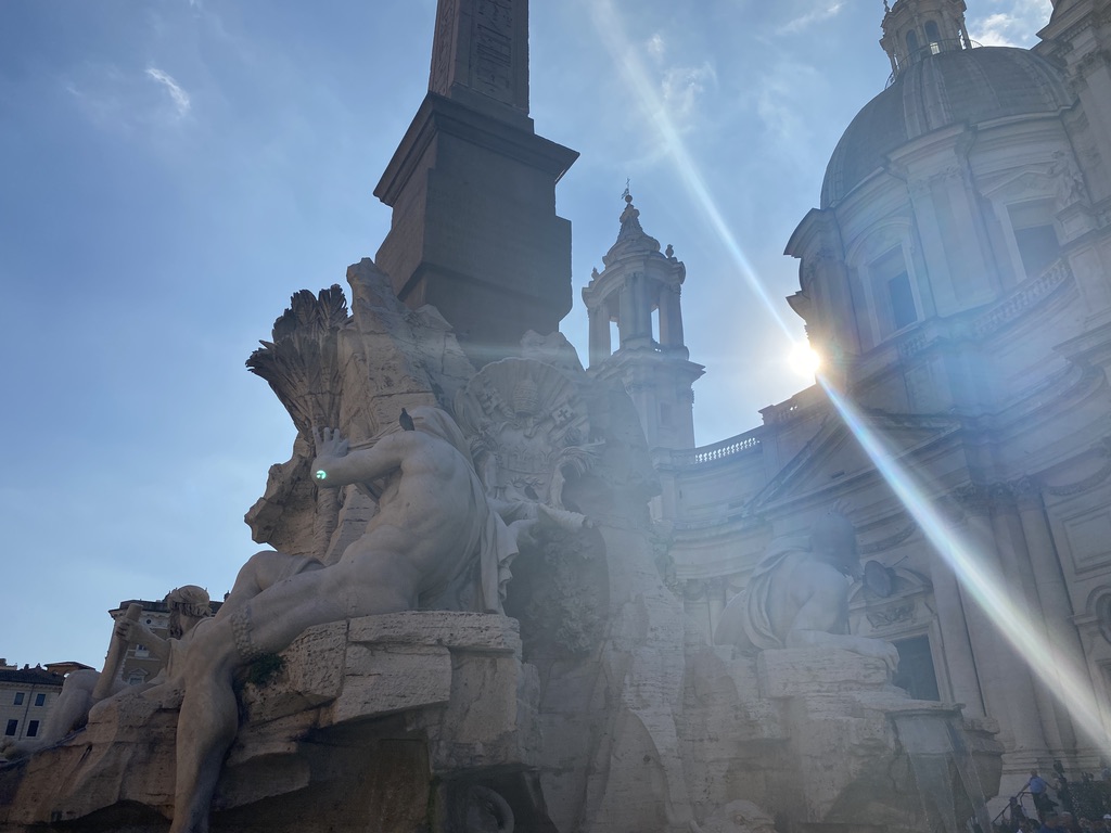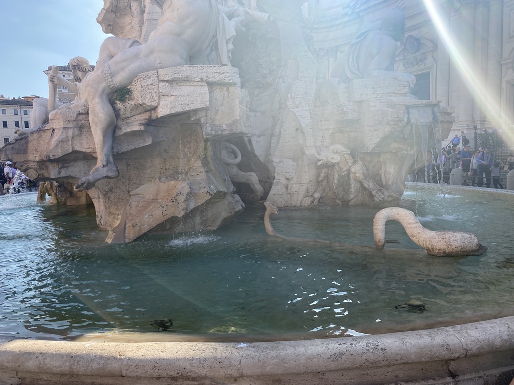 I bought a purple rabbit fur coat (vintage, of course, so it doesn’t support the industry) and when we weren’t doing that, we were walking into various cathedrals with architecture that could bring you to tears, and encountering fountains entangled with statues of mythological figures dramatically heaving themselves on top of each other.