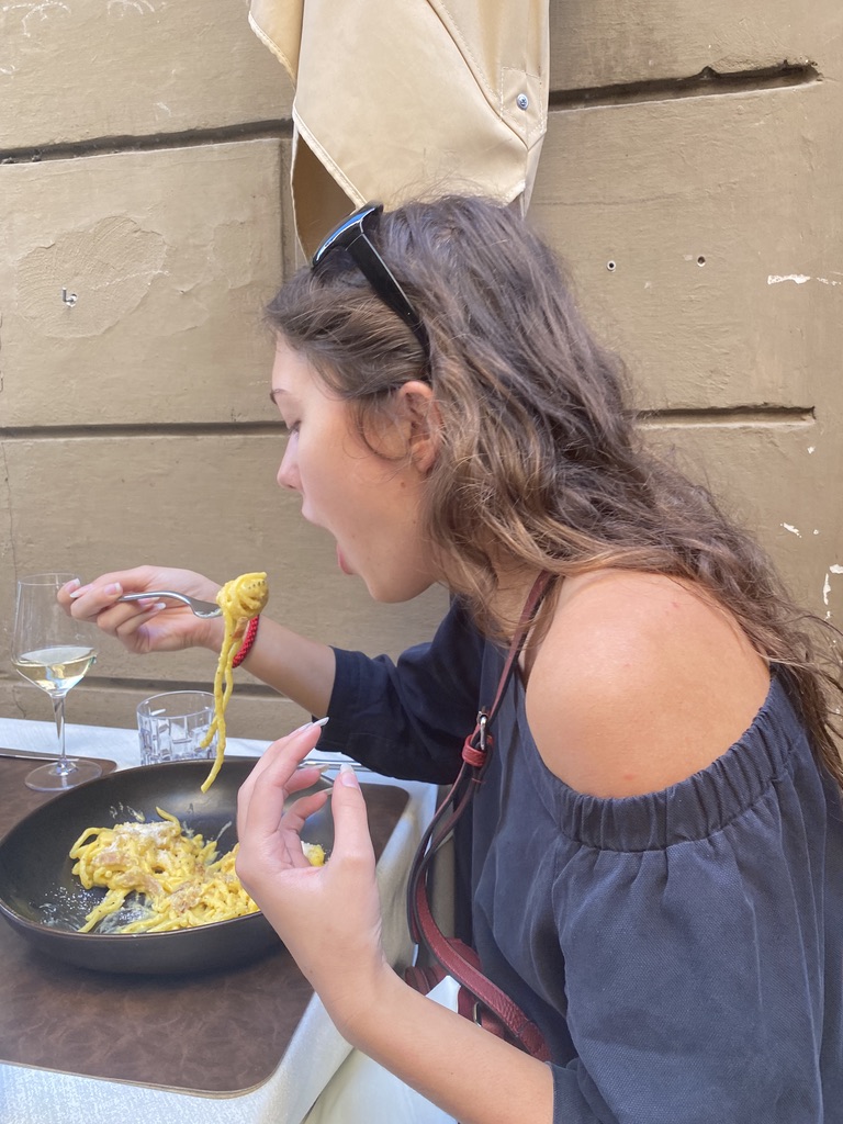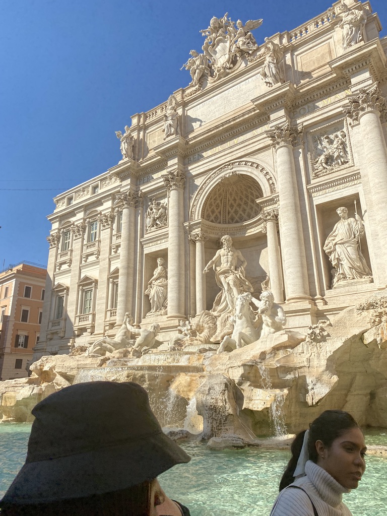 Out and about, we grabbed lunch near the Colosseum, where I scarfed down plenty of Carbonara and caci e pepe, two famously Roman meals. We ate gelato at the Trevi Fountain, followed by a photoshoot. I threw my euro in and made a wish, but that wish is between me and Trevi. I had my head turned once again as someone got proposed to, but I joined in the applause when a guy shouted, “she said yes.” There was wine with every meal and gelato after every meal, a slice of tourism heaven.
