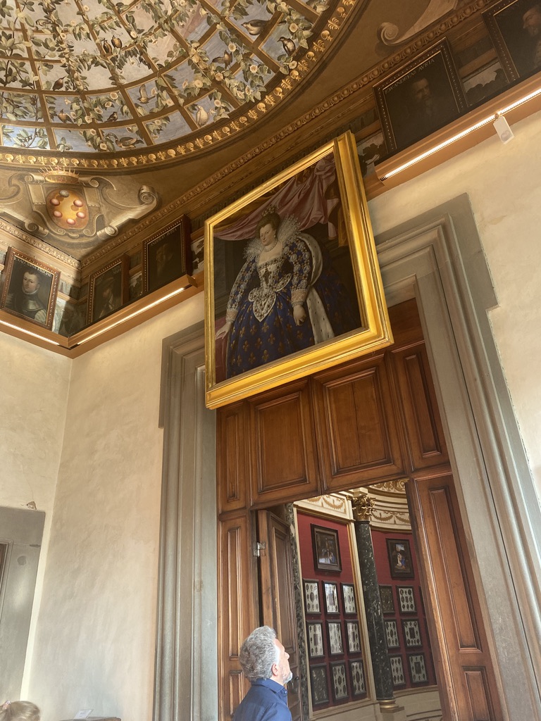 I wanted to reach out and touch this time capsule of feminine beauty. Instead, I stood there mesmerized by the flowers in the painting, which I’d never noticed before, and turned behind me to get everyone else to notice them too so that they could join in on my enthusiasm and bask in the beauty of it with me.