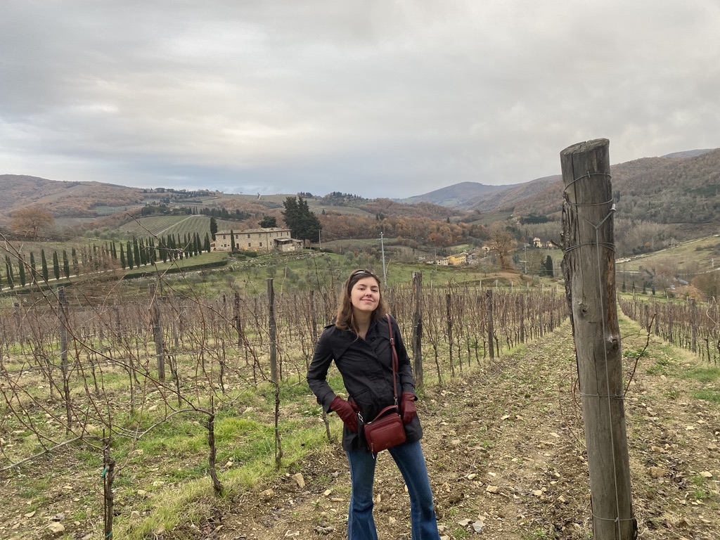 As we traveled up the Italian countryside, which was now speckled with orange and red trees, I wanted to take it all in, but my motion sickness wasn’t having it. Having been shaken up like dice in a can, we arrived at the first wine vineyard.