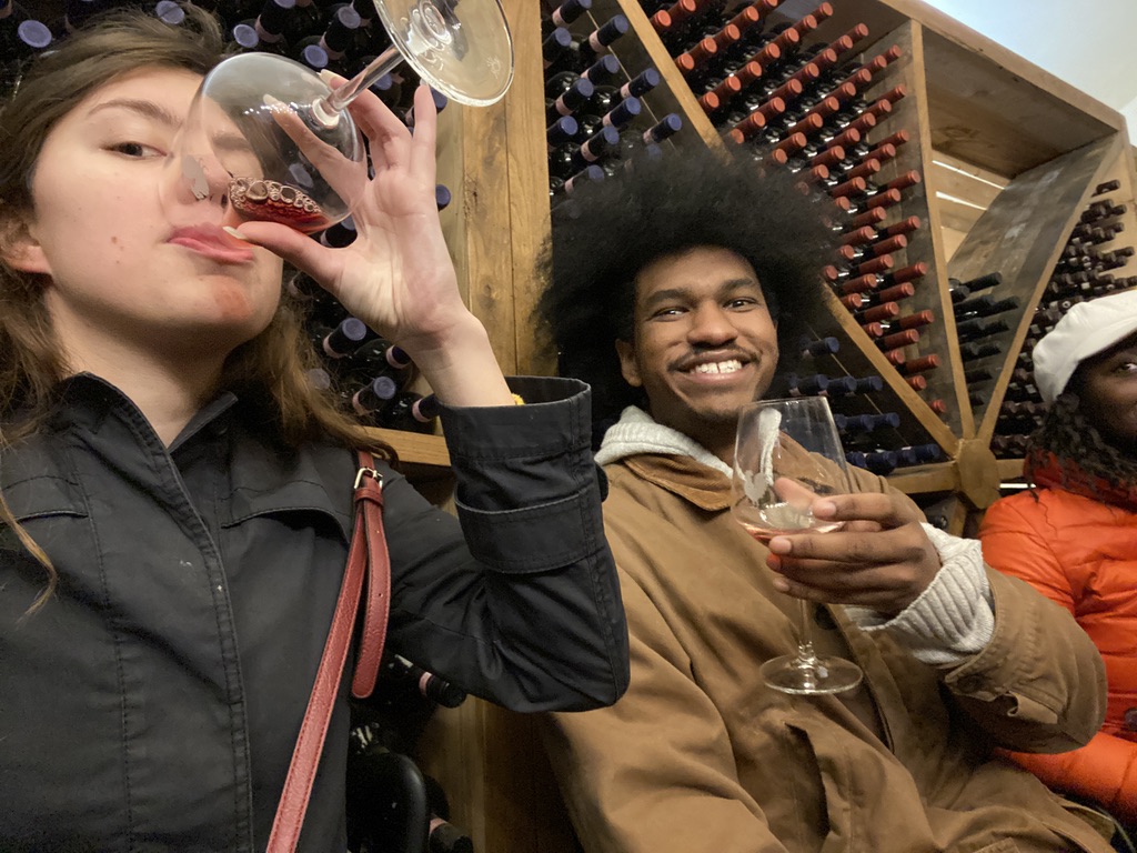 I learned how to hold a wine glass by the stem and swirl it around in order to get all of the flavors activated before shoving my face into it. I wrote down my observations about the wines, but all I could remember was that the last one was a sweet white wine that tasted like honey as we dipped cookies into it. Overall it was a good day of trying new things and saying “cheers.”
