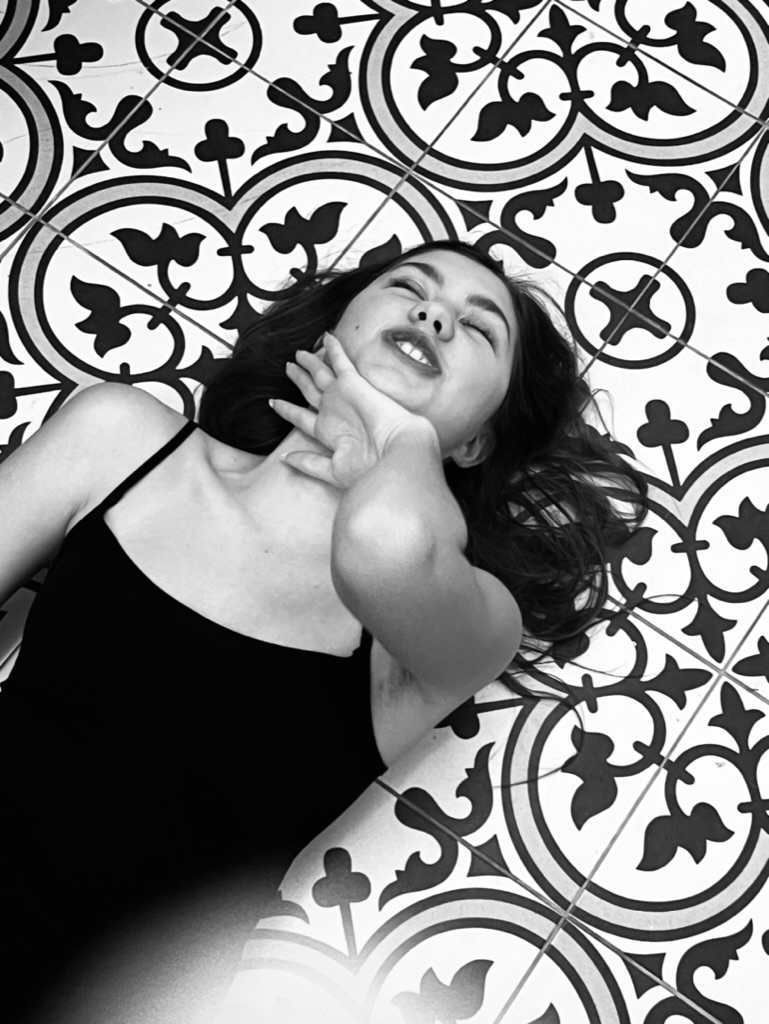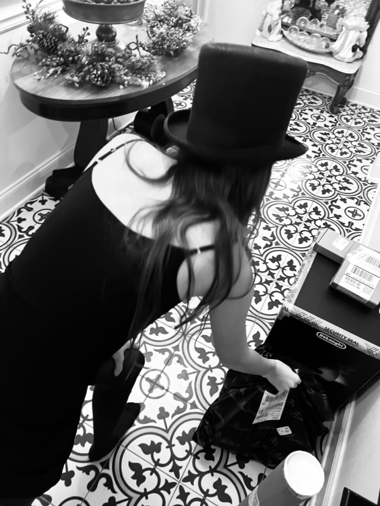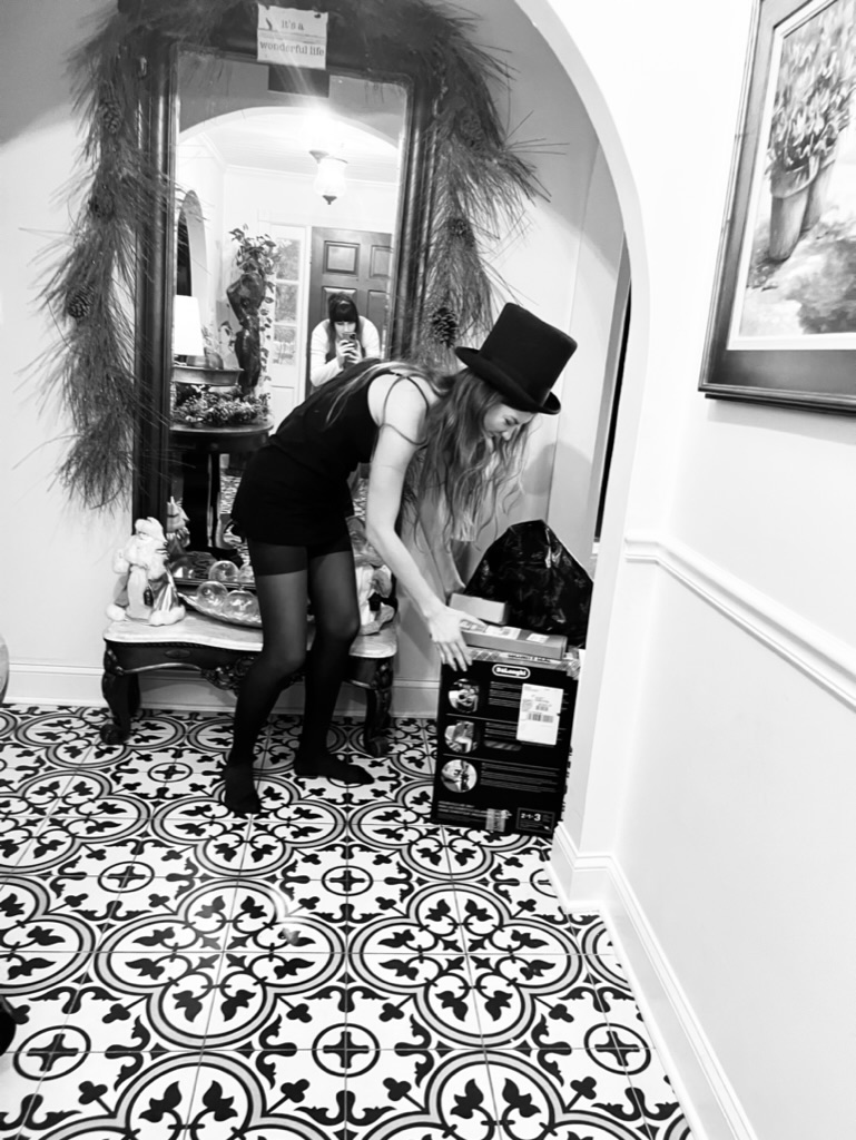 It’s not a royal portrait photoshoot until I take a black and white photo over my black and white tiles in either a black dress or a black and white dress.