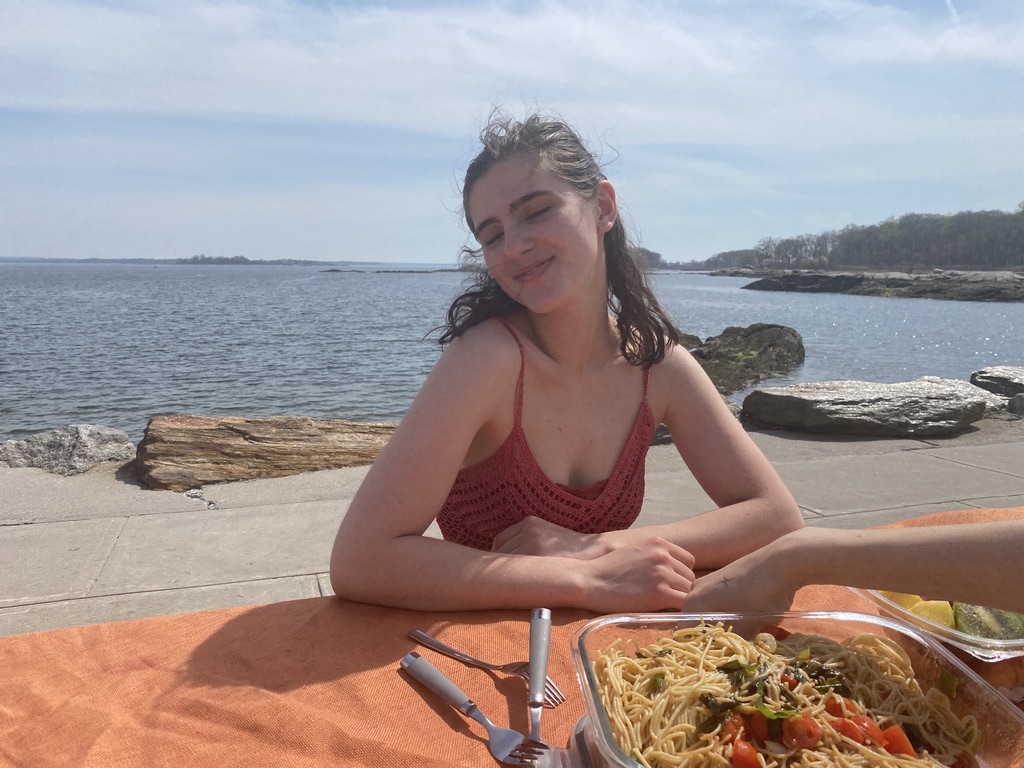 On a glorious spring day, I went to Glenn Island Beach with my friend Alyssa and her friend Olivia in order to enjoy the apocalyptically warm weather we’ve been having. I’d made up a picnic of Mediterranean pasta, fruit, and sangria. We sat at a picnic table in the park as close to the water as we could and had our nice, almost-end-of-semester outing. It was exactly what you’d expect: a summer playlist that we curated and played along the way, books that we brought even though we weren’t going to read them, and the booziness of sangria in balmy weather.