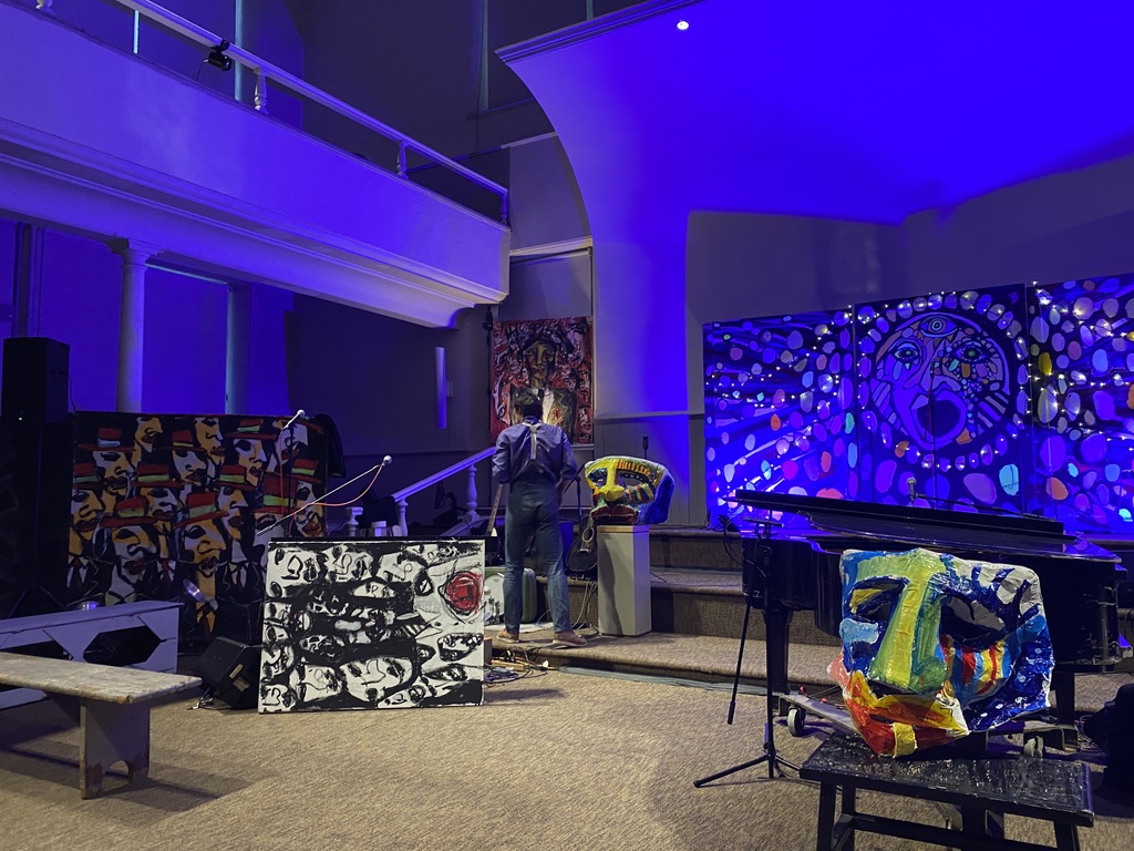 Christopher, as well as writing it, starring in it, singing, and playing the piano throughout, painted the artwork that made up the set, placing him truly in renaissance man status.