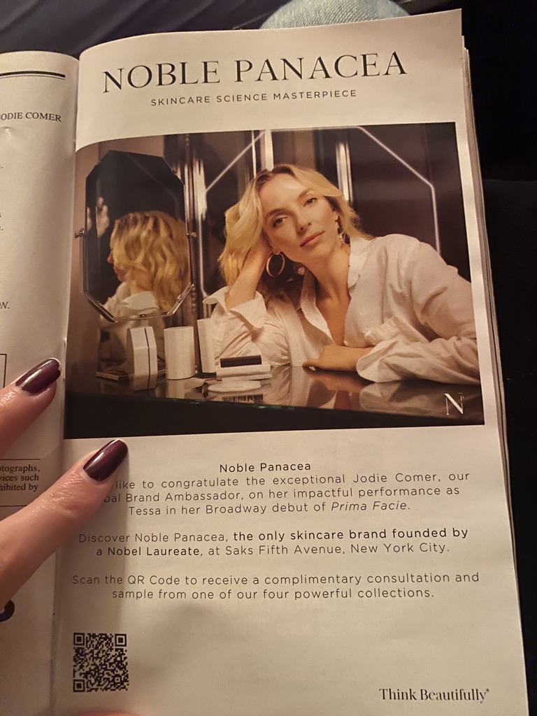 I took my seat early and didn’t want to get out of it, even to pee, since I knew that I wouldn’t be let in late if I missed the opening of the show. Watching the curtain rise and seeing Jodie Comer standing there in her barrister’s outfit to a roar of applause was too much for me. I was worried that my expectations were now so high that there was no way for this performance to live up to it and yet, it was a masterpiece. And I don’t like the “M” word. For starters, to say that Jodie Comer earned that Tony is an understatement.