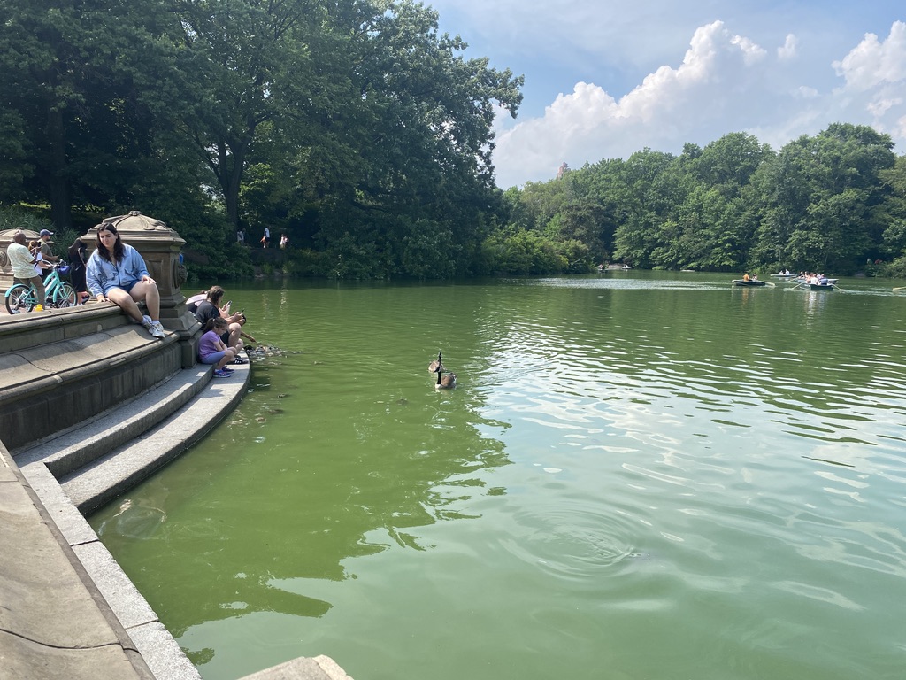 So, I had lunch at Le Pain Quotidien at the Central Park Boat Club. One mint lemonade and chicken mozzarella panini later, I was ready to move further into the park and join the swaths of people splayed out on the lawn, reading their books and playing frisbee. It was a brisk 90 degrees outside and I was wearing a chic all-black ensemble that included the knee-high rain boots since the chance of rain was the only part of the forecast that I’d taken to heart.
