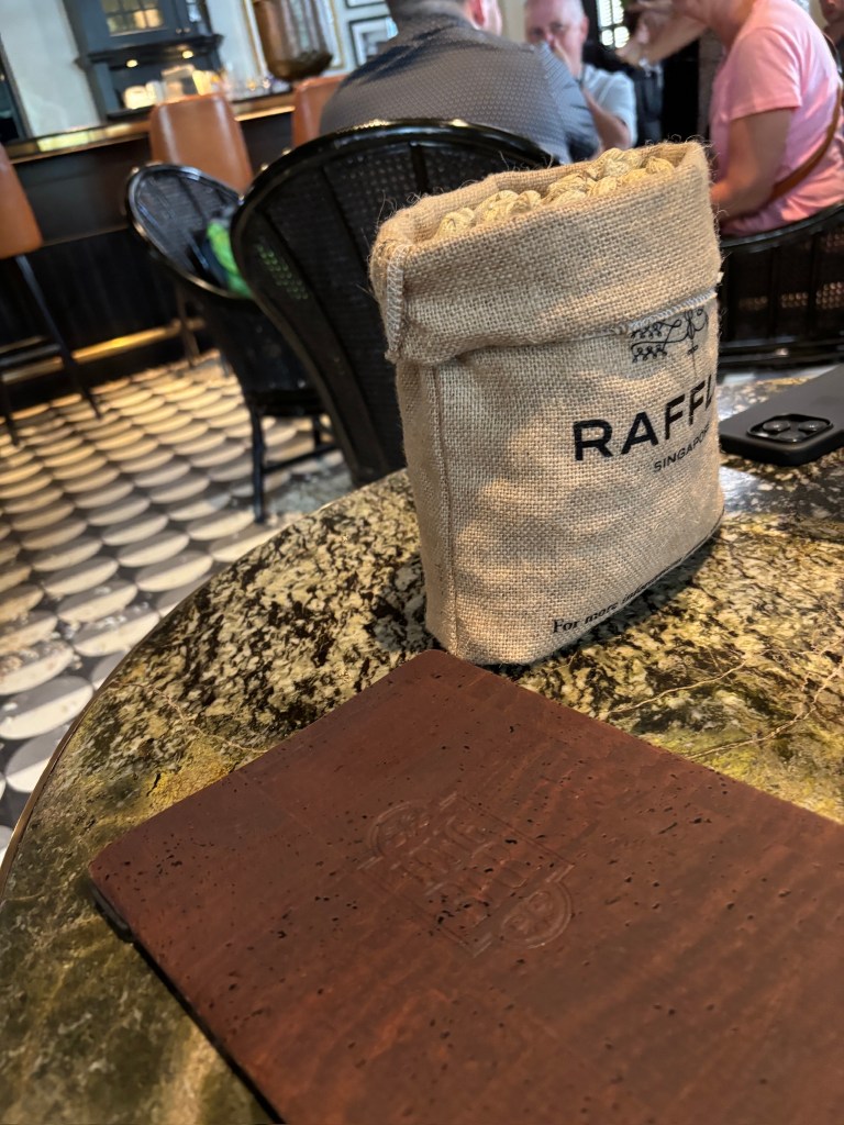 My aunt and I enjoyed our fruity cocktails with thick wedges of pineapples, while enjoying the crushed peanut shell ambience of the Raffles Hotel.