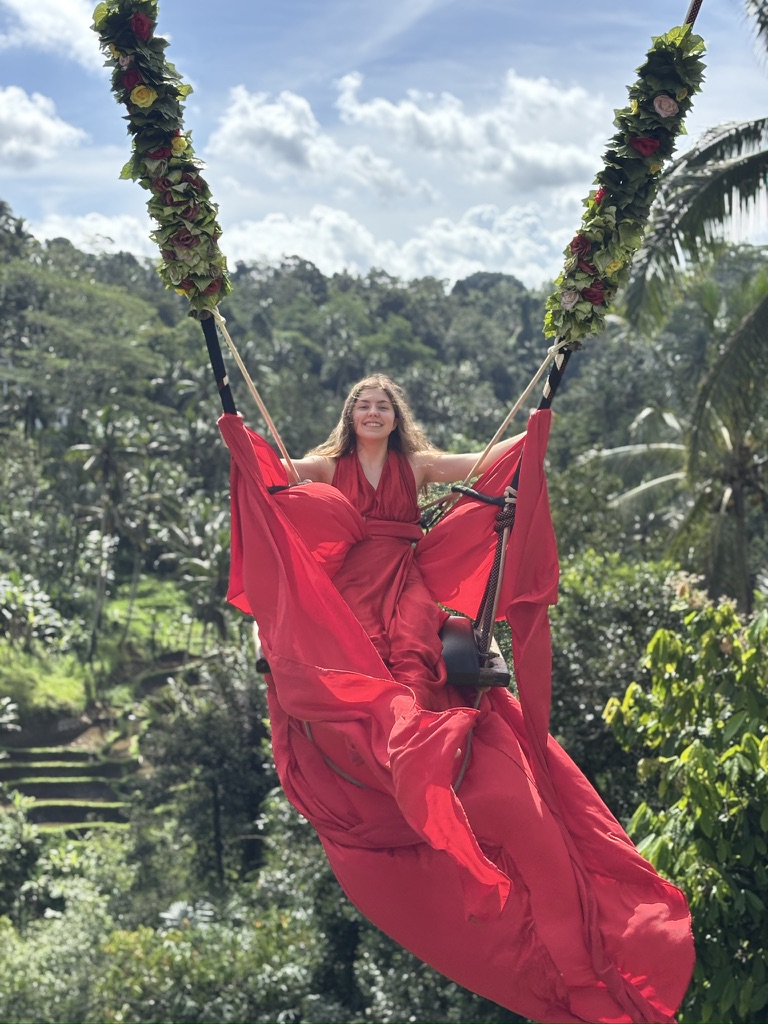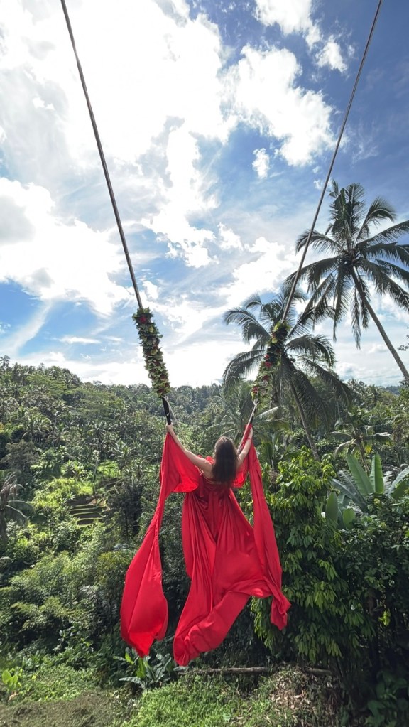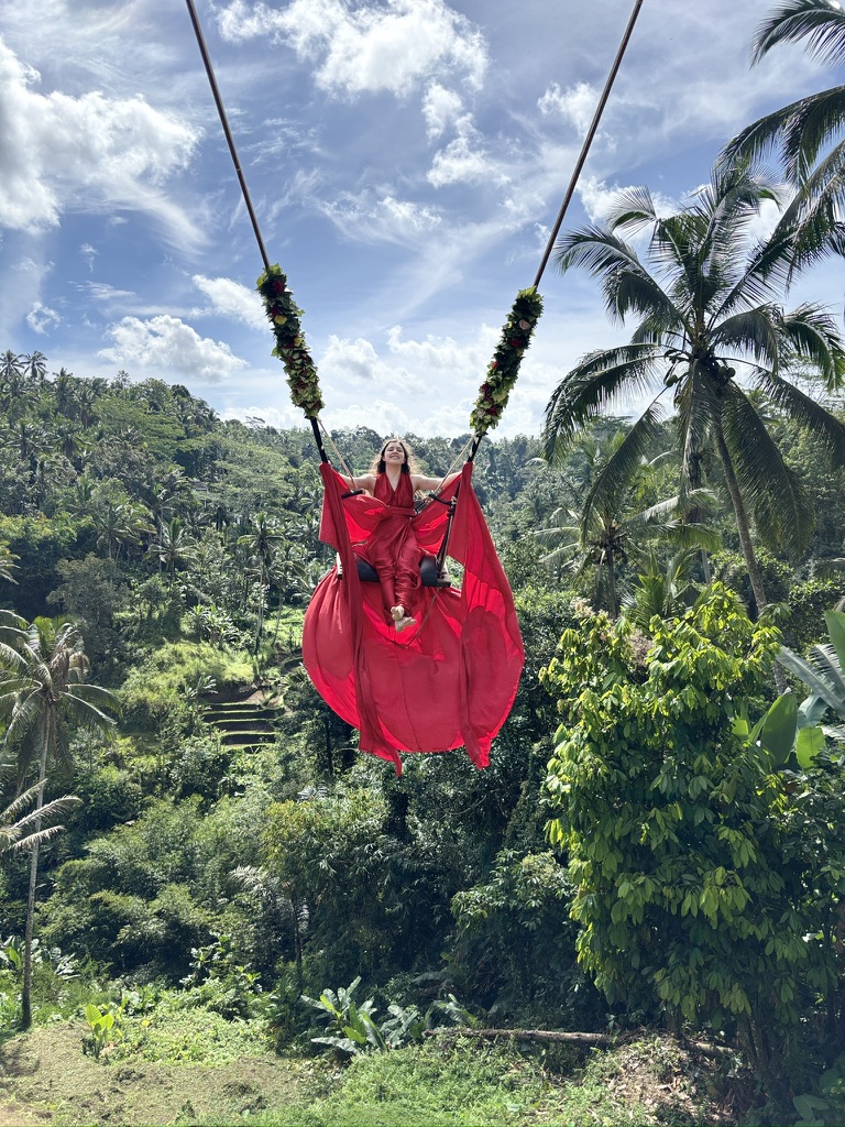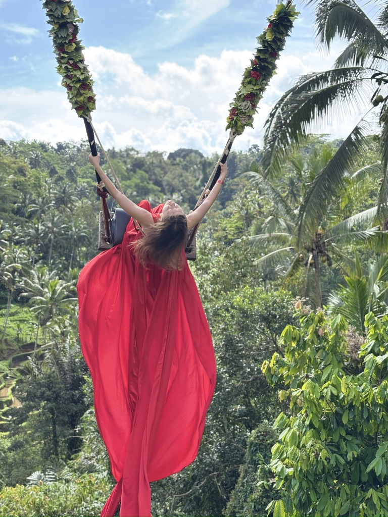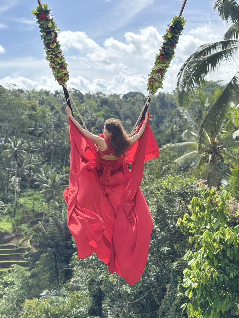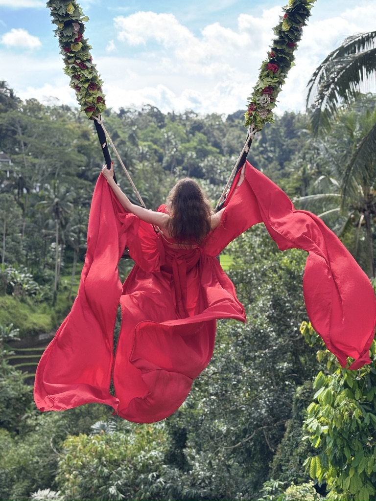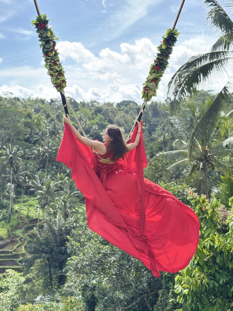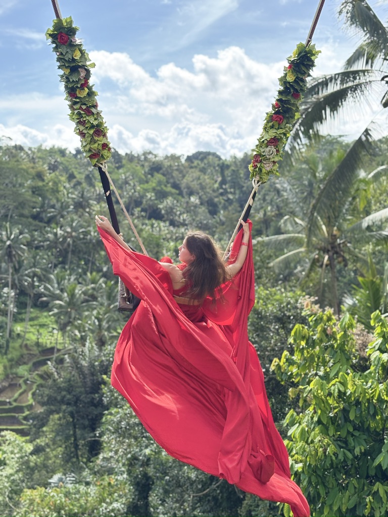 The Island of the Gods had a way of making me feel like a goddess and it’s not just the poolside mojitos. For me, it was swinging over a rice terrace in a beautiful red dress on a bright, sunny day.