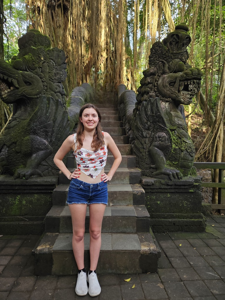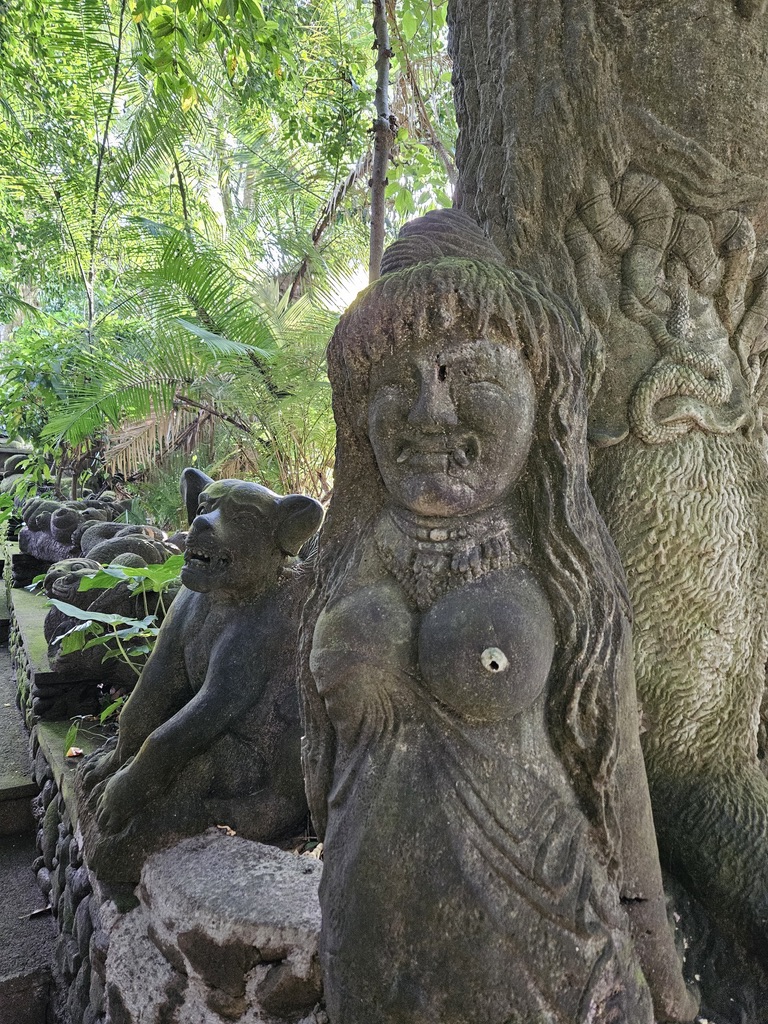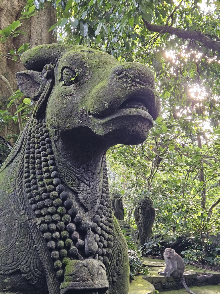 The Monkey Forest was a fun excursion. I got to watch the monkeys come and go as they pleased, walking through a jungle that was draped with vines and seeing statues that were fuzzy with moss.
