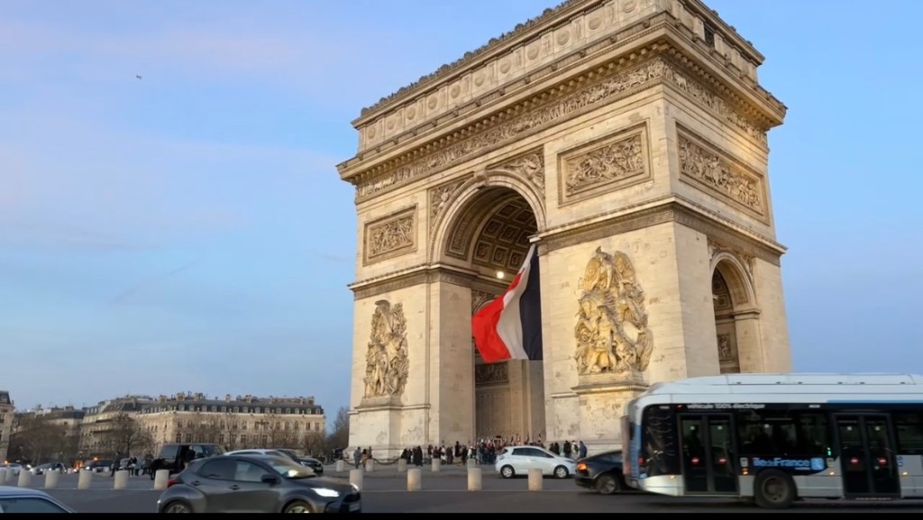While walking underground, I passed several people in marching band uniforms who were carrying musical instruments. Then I passed several people in military uniforms who were carrying assault rifles. A military display had just wrapped up, ending with the French flag waving over my head as I stood underneath the Arc de Triomphe.