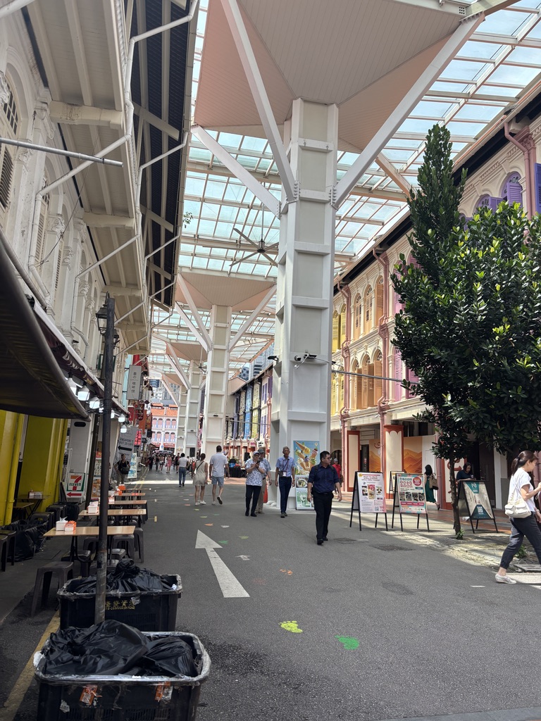 Once we finished breakfast, my aunt and I explored Chinatown. We started around the Buddha Tooth Relic Temple and then walked down the colorful, bustling streets, dipping into shops that sold talismans, jewelry, and small wooden elephants, and drinking dragon fruit tea that we bought at a tea stand. Everywhere we looked there were paper lanterns, statues of Buddha, and murals of Bruce Lee.