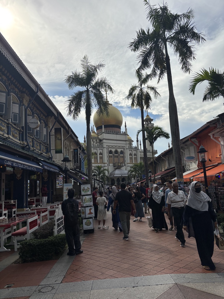 In the late afternoon we went down to a part of town called Arab Street. Specifically we went to Haji Lane, a brightly-colored street known for its boutiques and shopping centers. There we checked out all of the clothes and Persian rugs on display.