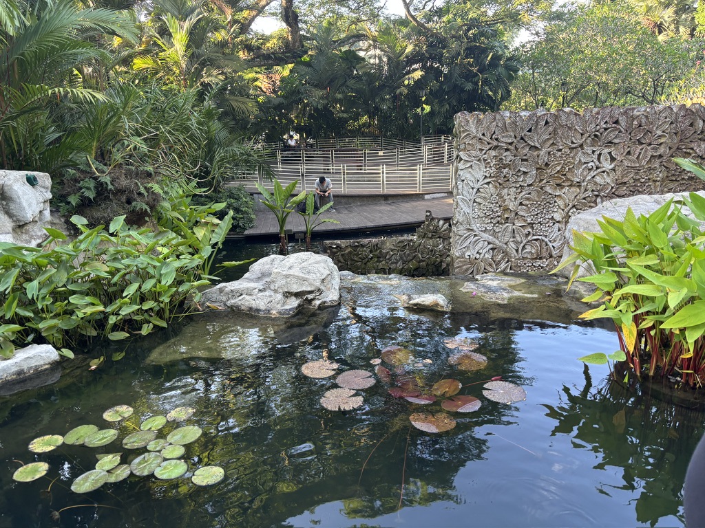 After the excitement of my hike through a monkey-filled rainforest, the garden felt restful. It was still hot and humid, like walking through a sauna, but the experience was what I imagine it was to be in an oil painting.